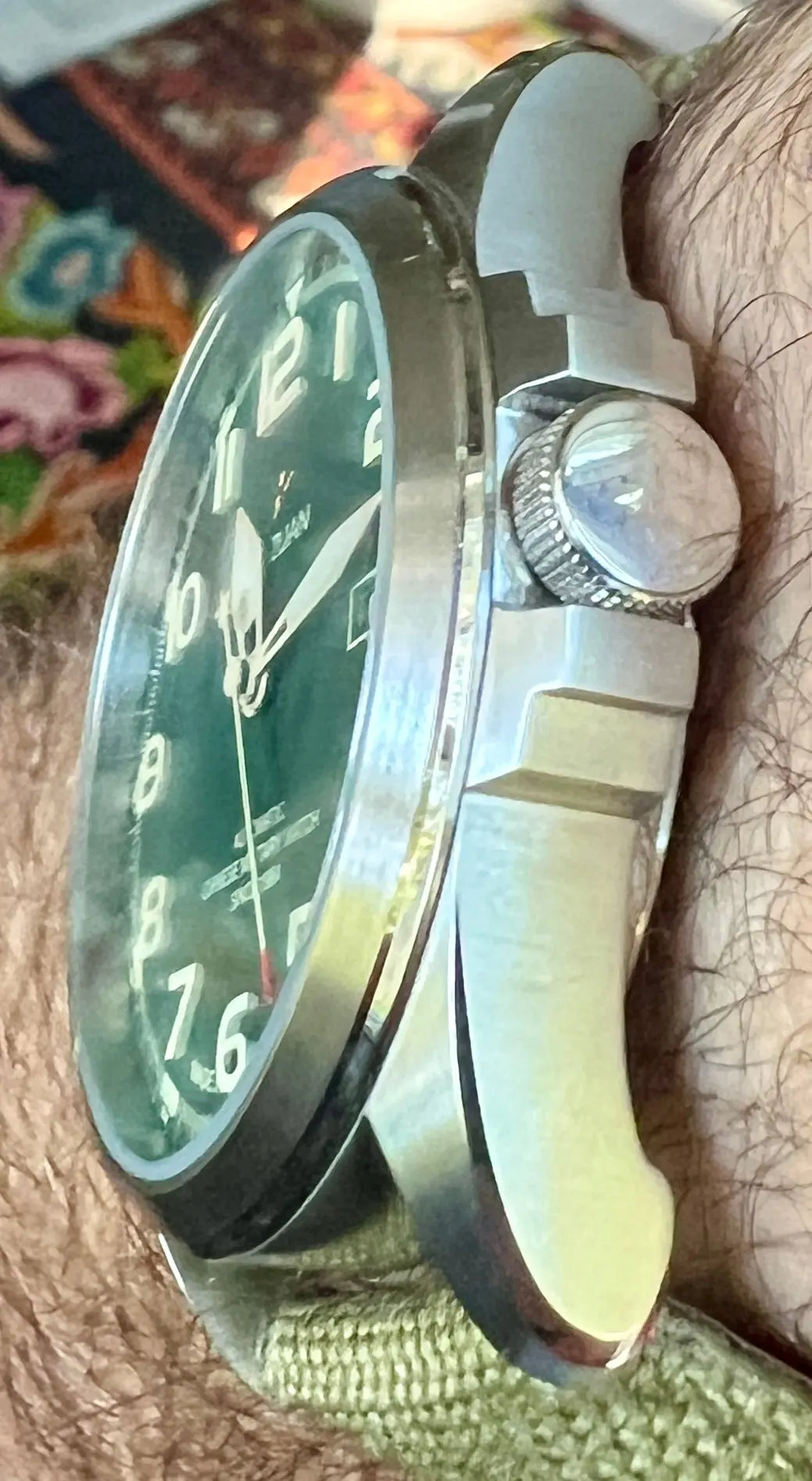 This is a wonderful watch. The applied indicies, the color are both amazing. It's big and super legible and also keeps good time. They could have used better hands though, they seem sort of cheap and thin. The strap is so rough and has to change it immediately but i find myself just staring at it. It really is a beautiful watch.
